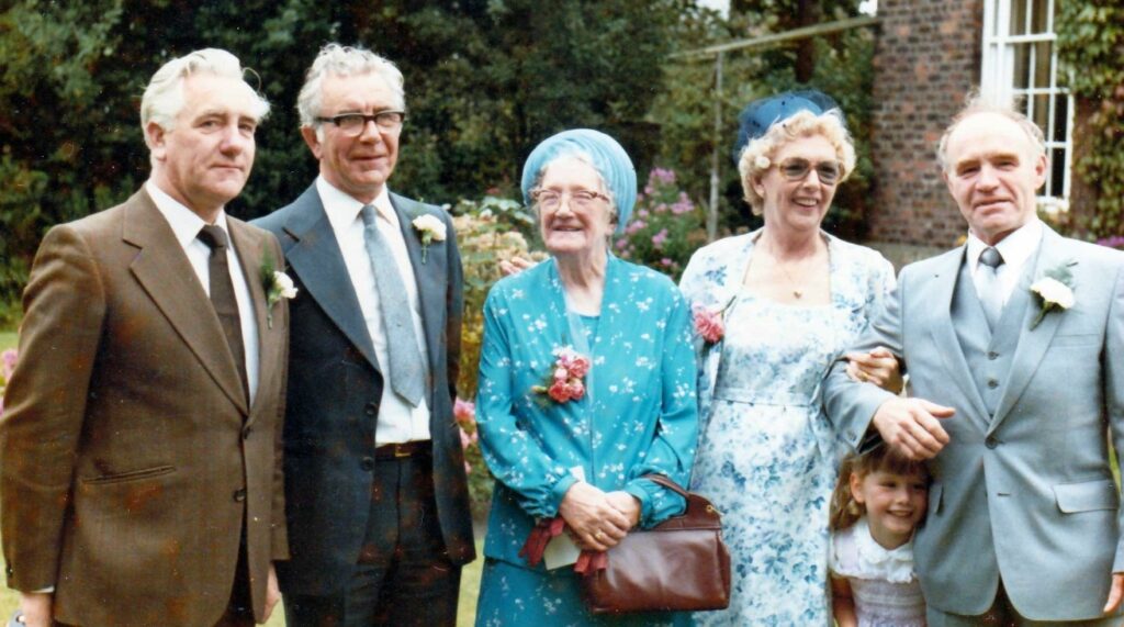 W & M Family Photos Laura; Joyce; Dot; Joan and LilThe Woodward Family George; Francis; Anthony; William; JamesDorotheaChristmas-1958Bill; Jim; Dot; Joyce; Tony; Joan; George; Jim; Lil; Laura; (unknown)Mrs Pimblett; Grandma, Martine; Mrs Greason; Angela; Mavis GreasonStephen; Linda; George, Francine, SueDot and Jim's Second or Third Wedding Anniversary - 26 December 1954/55Tony; Dot; Steve; Jim; Joyce; (unknown); (unknown)Jim; Frank; George; Jim; BillJoan; Dot; JoyceFamily - c 1956 - 105 Moorhey Road Bill; Jim; Frank; Tony; JimDot; Joyce; Grandma; Angela (?); Lil; Laura; Joan; GeorgeGeorge; Sue; FrancineChristmas 1984 - 17 Dennett Close Bill; Dot; George; TonyJim; Grandma; FrankTinas Wedding - St George's, MaghullSeptember 1985Olive; Francisca; Martha Lilian; Laura; Jim; May MedcalfeJames Woodward-1826-1896Born: 1826 - St HelensDied: 16 October 1896Buried: Church of the Ascension, Heath Road, Upton by ChesterWilliam Joseph Woodwardcirca 1930Mary (Byrnes) Woodward & William Joseph Woodward1907Mary {Byrnes) WoodwardBorn: 1878 - IndiaDied: c 1935 - ShottonWilliam and Mary (Byrnes) WoodwardMarried: 26 June 1902 St Werberghs RC Church, ChesterWilliam Joseph WoodwardCollege RagWilliam - left of drummer, standingWilliam Joseph WoodwardCollege Cricket TeamViolet; William Joseph; Martha Lilian: TonyWedding Day - 6 September 1925Bridesmaid: Violet ThompsonBest Man: Tony NolanMartha Lilian; William Joseph & James William-19261926 - HusbandMartha Lilian; William Joseph & James William James1926WifeMartha Lilian with James William1 November 1926William Joseph and George 1934William Joseph; James; Francis; Dorothea1933 - New BrightonGeorge and Martha Lilian1935William Joseph and George1935James and FrankStanley ParkGeorge; Frank; Dot; Jim1937Martha Lilian; George & stray dog1937 - SeaforthChristmasMartha Lilian; Lil; Dot; Laura; JoyceTony; Jim Kane; Lil; Dot; Frank; Bill, Martha Lilian - 1952105 Moorhey Road, MaghullDot; Martha Lilian; Lil - 1952105 Moorhey Road, MaghullGeorge; Frank; Tony; Bill; Jim; DotBill; Dot; George; TonyJim; Martha Lilian; FrankFrank; Martha Lilian; Dot - 1982Taken at Christine & Alan's WeddingSt Andrew's Church, Maghull21 August 1982Bill; George and TonyDay at the BeachGeorge; Antoinette; LauraFrancine; Mavis (Dot’s friend); Dot; Joan; Christine; George; Martine and SueA PartyFrancine; Unknown; GeorgeAntoinette; Tina; Linda; James; Steve; William; SueAngela; Christine; KarineDot; Jim; George; Frank and Bill1936Bill; Martha Lilian; Dorothea - 1932Dorothea and George -1936Dorothea; William Joseph; George - 1935Frank; Dot; Martha Lilian; Bill; JimEgremontBIll; George; Martha Lilian; Jim; Frank; Dot1934Possibly Martha Lilian & DotMartha Lilian; (from front) Jim; Frank; Dot; Bill; George 1935Martha Lilian and Bill - 1934Martha Lilian; Bill; Dot - 1934Martha Lilian; George; Bill; Dot - 1935Martha Lilian; George; Dot -1934Pat Medcalf and BillPat Medcalf; Frank; Jim; BillWilliam Joseph and Martha LilianMartha-L-George-Bill-DorotheaThe Men in the FamilyBill; Jim; Frank; Jim Kane George; Martha Lilian; TonyAnother PartyJim Kane; Dot; Tony; Joyce; Joan; George; Jim; Lil; Laura; Unknown Mrs Pimblett; Martha Lilian; Martine; Mrs Greason; Angela; Mavis Greason Stephen; Linda; George; Francine; SueJoyce; Martine; Dot; Lil; Unknown; Laura - 1961Dot; Martha Lilian; George - 1964
